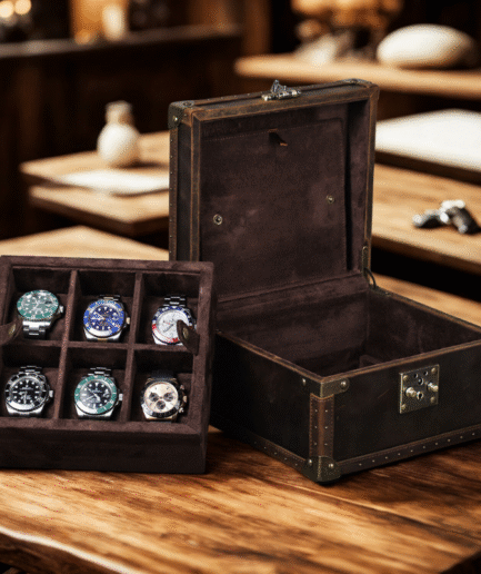 Clarity Vault is a refined leather glasses organizer that blends elegance with practicality. Crafted from rich Crazy Horse leather, it features eight dedicated slots to protect and display your eyewear in style. With its vintage-inspired texture and durable design, Spectra transforms everyday storage into a sophisticated ritual, keeping your collection secure and effortlessly accessible while reflecting a sense of understated luxury.